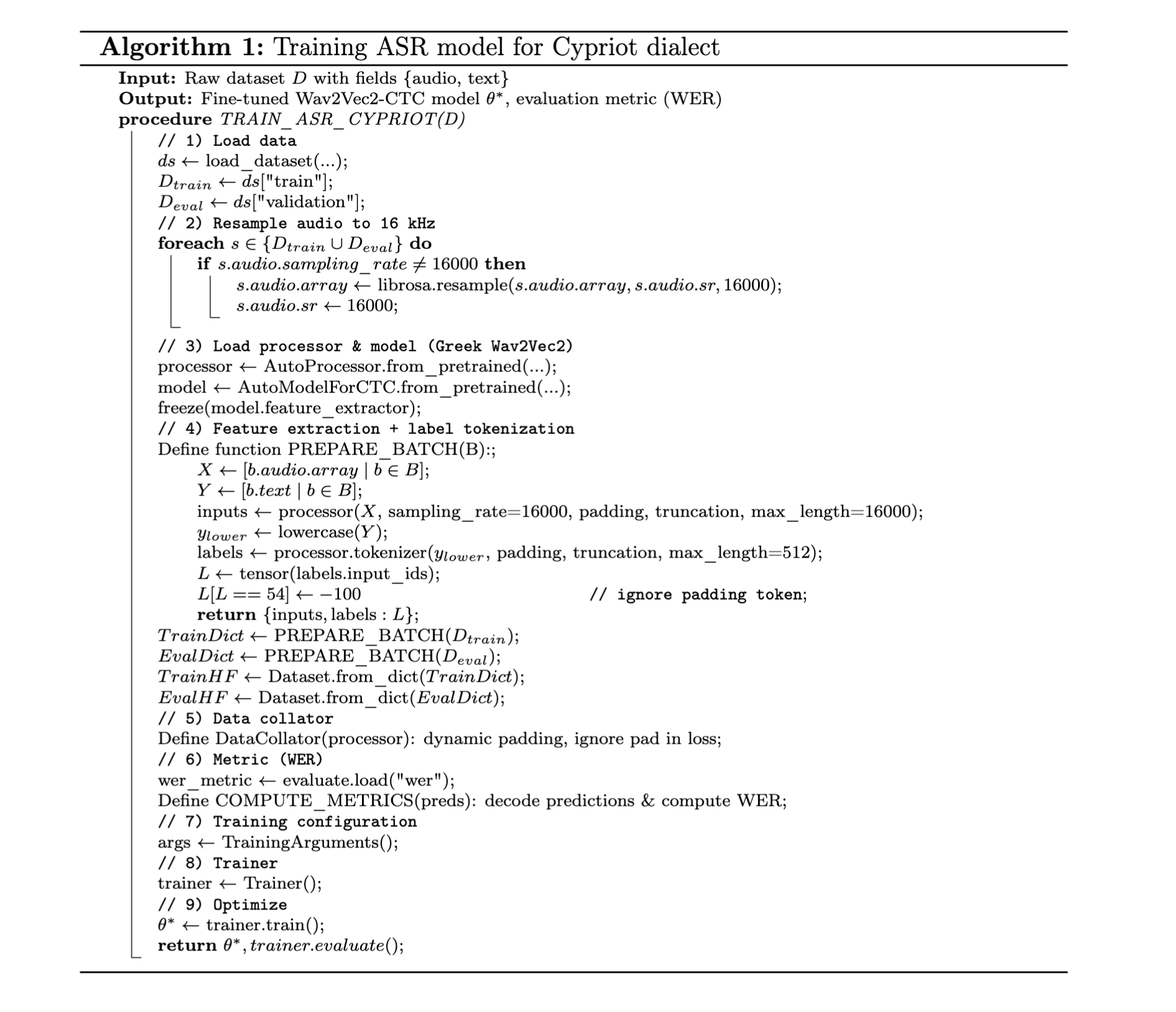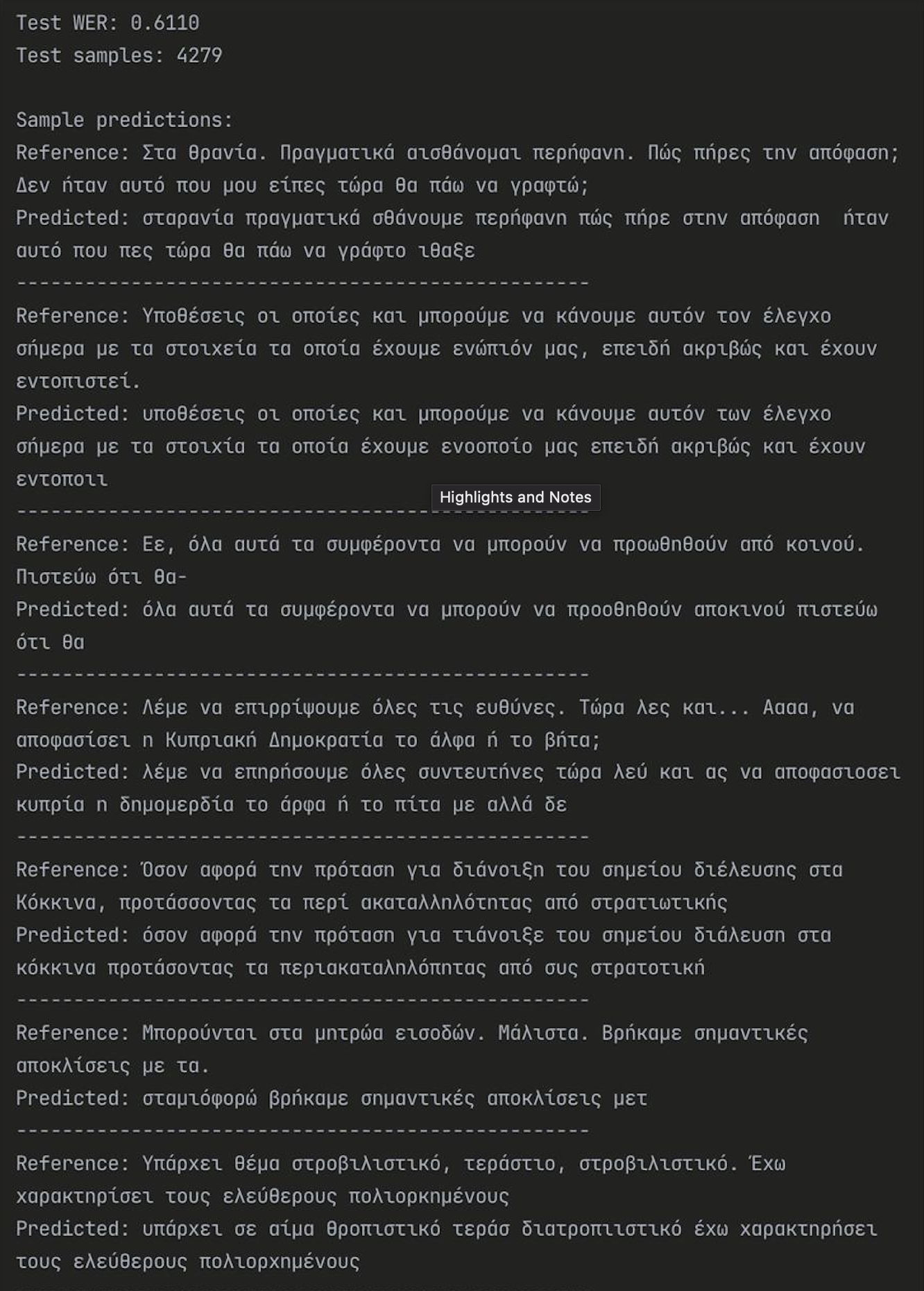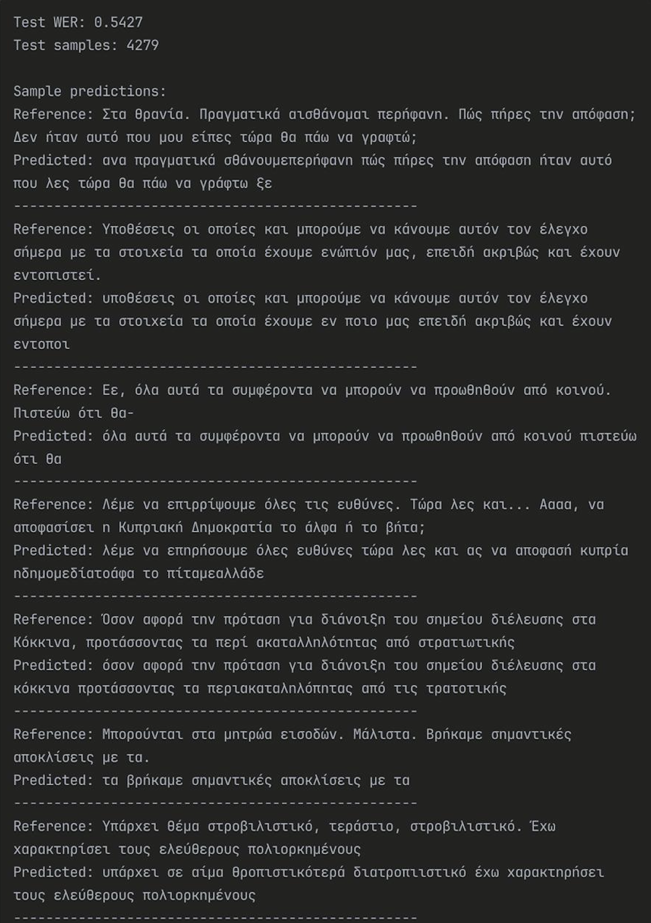 When I first started this internship, I had no idea what ASR systems were or how they worked. The only background I carried with me was some experience in NLP. In the first weeks, I didn’t even know what WER or CER meant — yet by the end of the final week, I was presenting a fully trained ASR model built on data I had cleaned and sorted, enhanced with KenLM for language modeling, and producing results comparable to ElevenLabs — but free. Along the way, before even discovering KenLM, I managed to build a masked language model trained on a Cypriot dictionary. Intrigued? Let me give you a quick summary of the journey before diving into a detailed breakdown later.